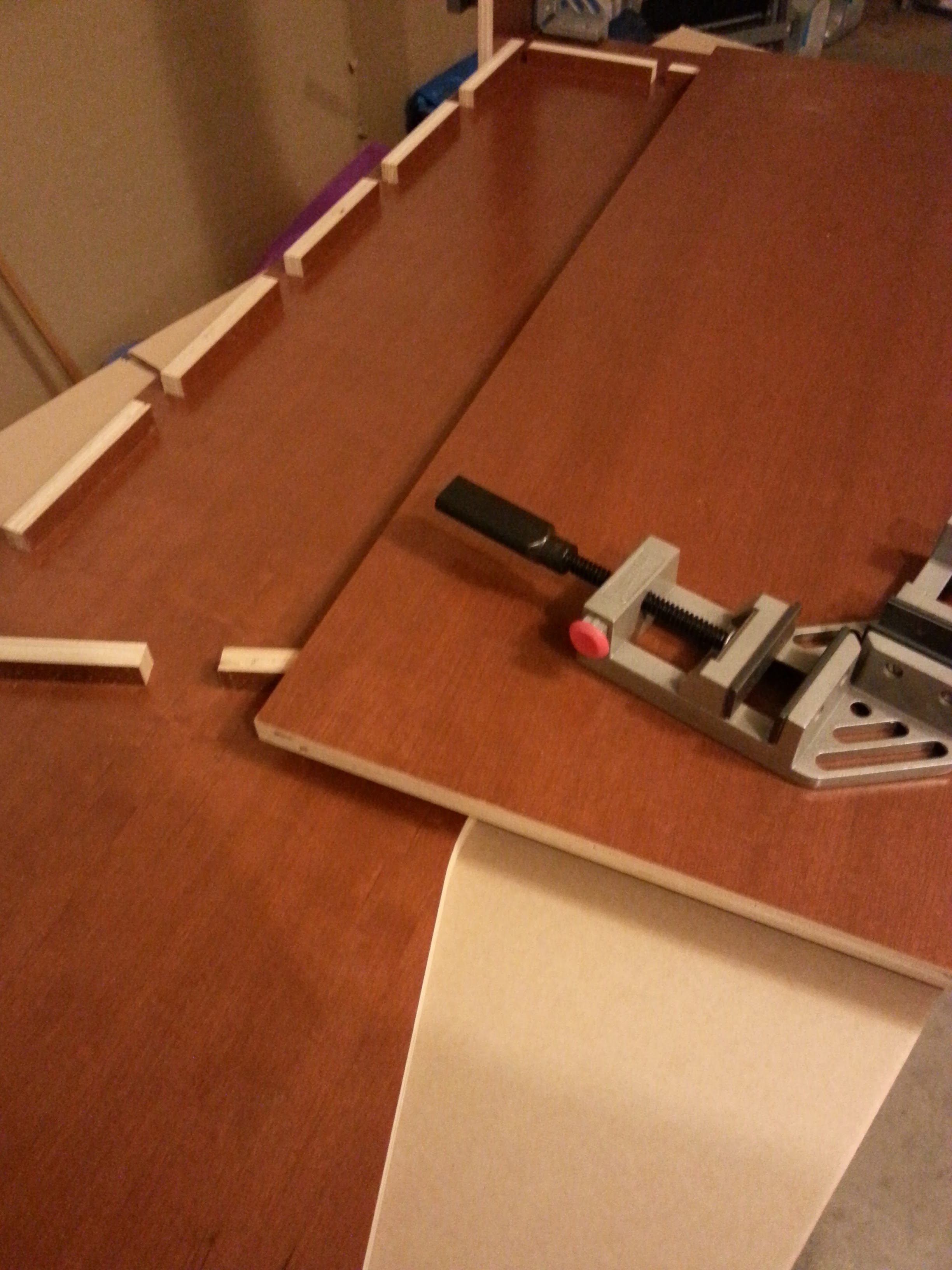 Started assembly. Simply used the nailgun to pop nails through the batons and into the panels: