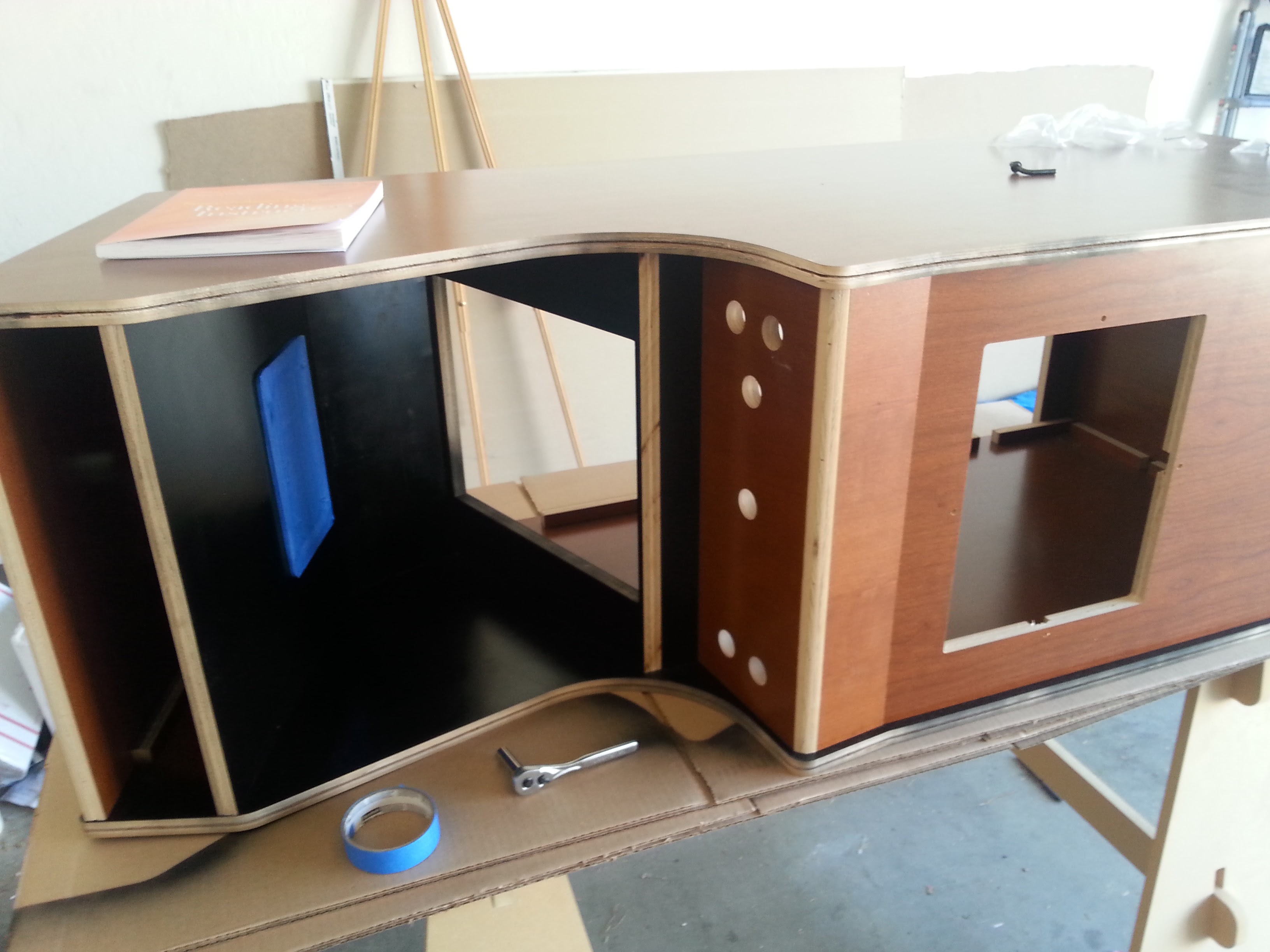 Test fit the control panel, taped off the speaker cover so I could do another round of paint:
