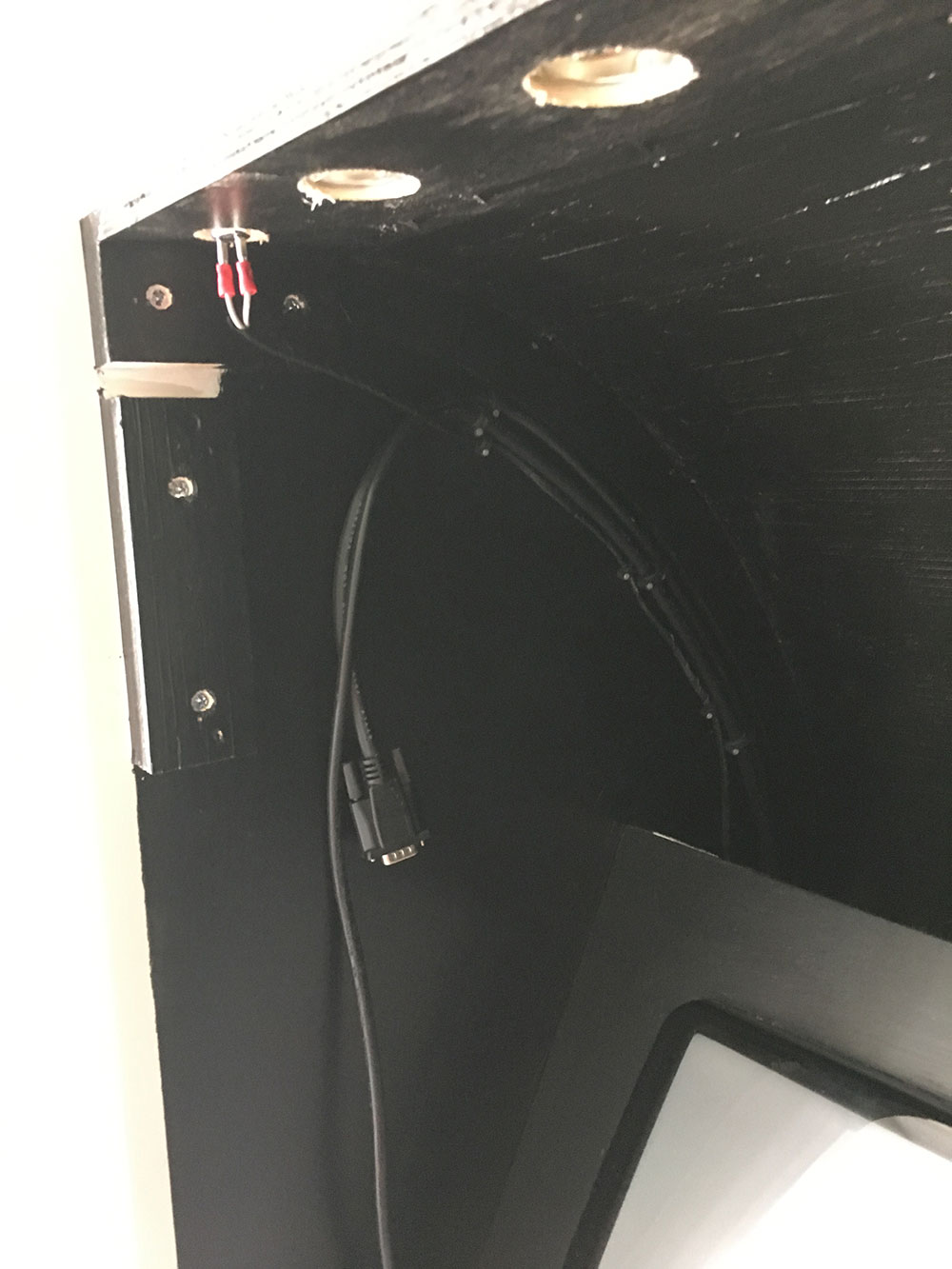 I’m using the speakers from the B&O TV which are plenty punchy enough for this build. Because I’m using an IPAC, I can control the volume using shifted buttons rather than wiring in a volume pot for a change. This meant all I had to do was extend the speaker cables from the TV chassis to the front panel.