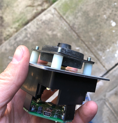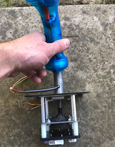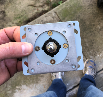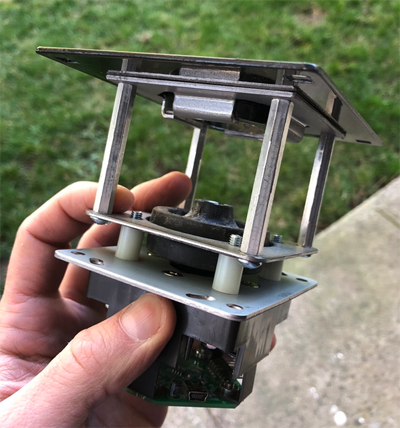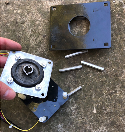 Step 7: reattach U360 base to mounting plate but remove the joystick shaft and drill holes using new ones as guides: