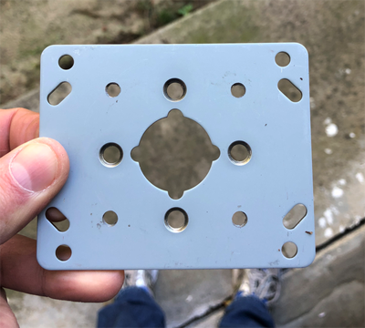 Step 6: remove U360 mounting plate (4 screws) and drill.