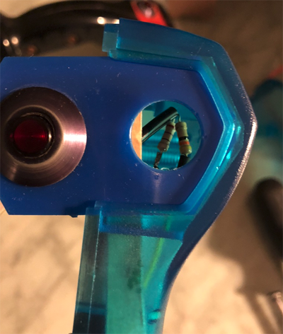 The only problem you are left with is the LED in the switch runs on 2V.  To solve this problem I used two resistors as a voltage divider circuit: