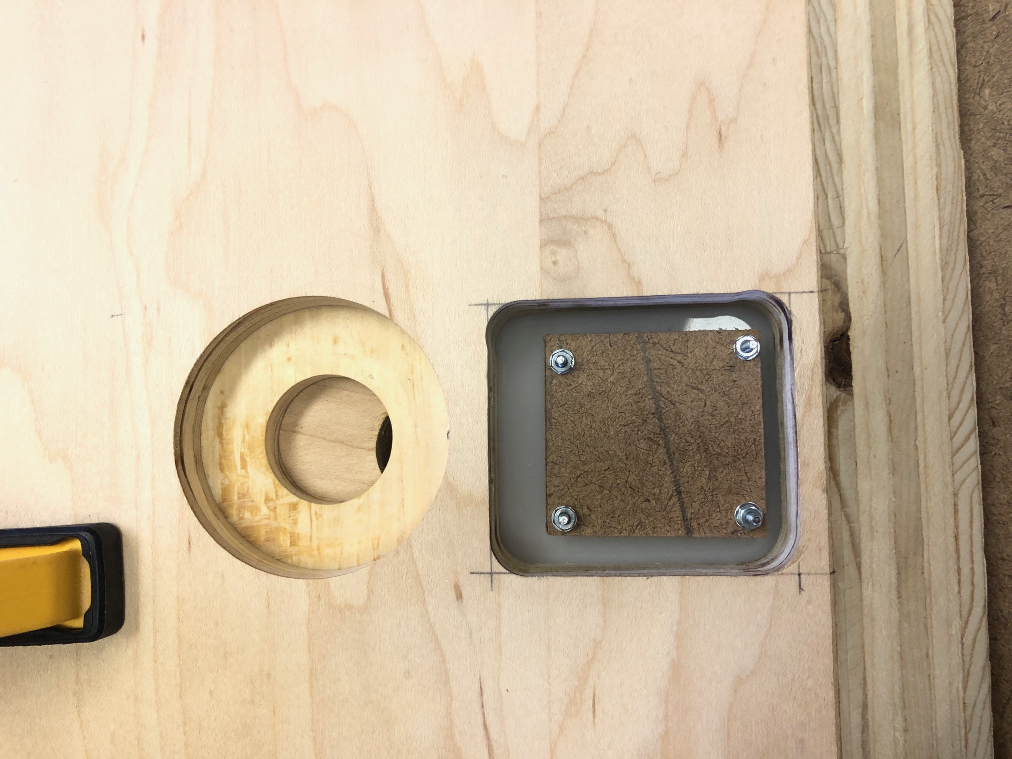 You can see the circle outline and how I needed to align it with the edges of the plastic support piece.  The circle needed to fall exactly within those lines otherwise it would be difficult for future me to get it to align.