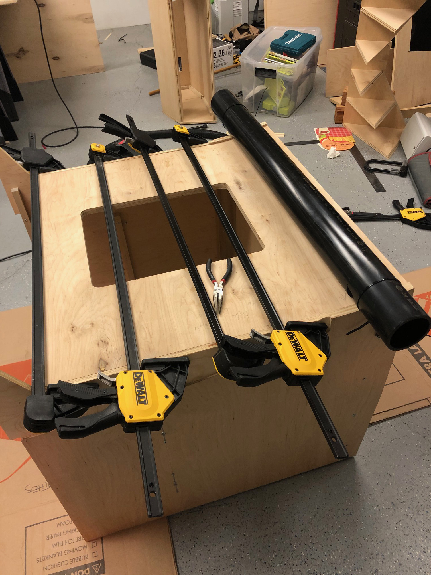 Took off all the clamps on the body and used the face of the coin door plywood as a guide to get smooth curves at the base: