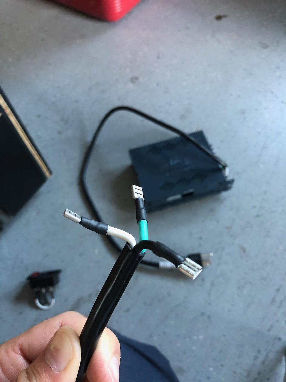 Crimped the quick disconnects on the power cord of a power strip that I bought as well