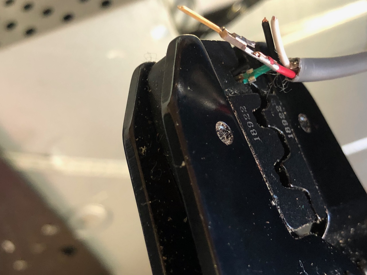 Next was wiring some Molex disconnects like I did for the joystick in my small box.  Again used Molex pins and matching housings by crimping the male and female pins: