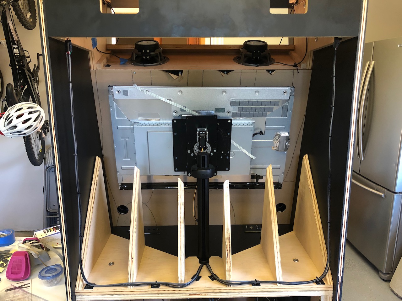 Lastly after some time I got the monitor rotating in the cabinet for the first time.  I actually had to go back and refer to my tutorial in the Automated Projects thread because it has been two years since I got this thing moving (damn time flies).  Glad I did that because there were a few things that I couldn’t remember.  I even needed to spray a little WD40 between the magnets and the VESA mount to make it spin smooth :laugh2: