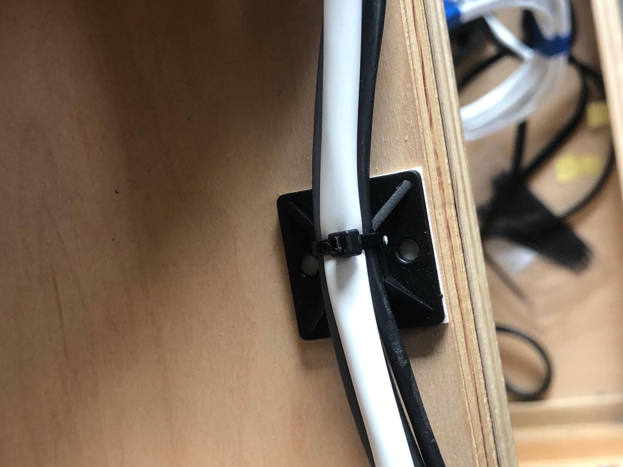 They are cool double side taped plastic squares with holes to feed the zip ties to.  Bob turned me on to the them and they are very handy.