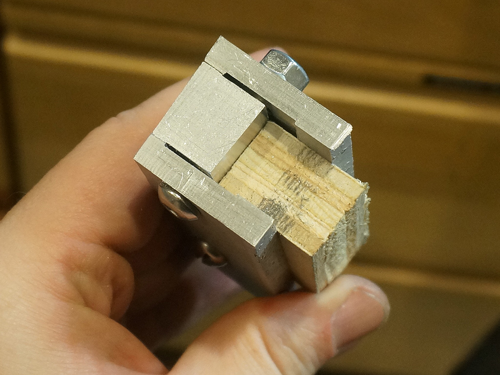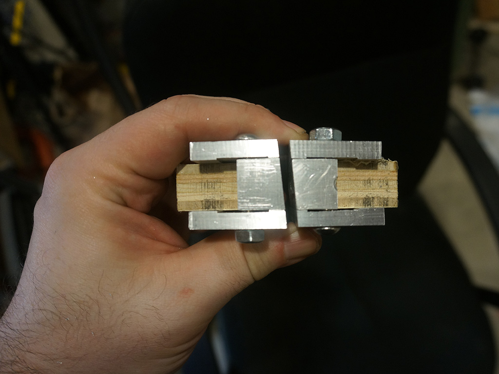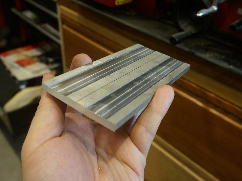 I found a chunk of aluminum in my metal stock that was 0.750" thick, which is a bit thicker than the 0.720" I measure off plywood. It had a few threaded holes in it, which you can ignore - none of them are important to this.