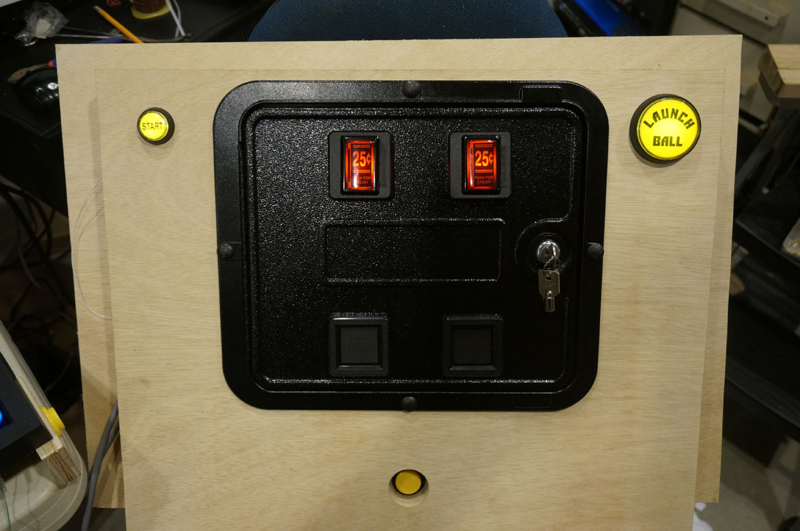 Near the bottom is a 4-button bracket of pinball service buttons I'll be mounting in the box behind the coin door.