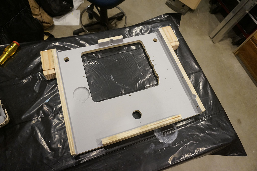 (The driving/flightsim/starfighter/mechwarrior parts of this cabinet are all going to be the same gunmetal grey that the accent panels of Mimic are, while the pinball parts above are extremely red, and the connective structure is gloss black.  I think this will work out visually, and help tie the two machines together thematically... but, we'll find out!)