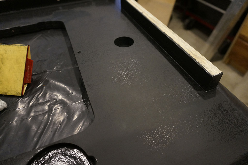 I've got a fifth coat of black on the three tricky panels right now, and once it's good and cured, I'll come back and give it the sand and polish treatment because I think it's thick and flat enough now.  Black Mirror, here I come.