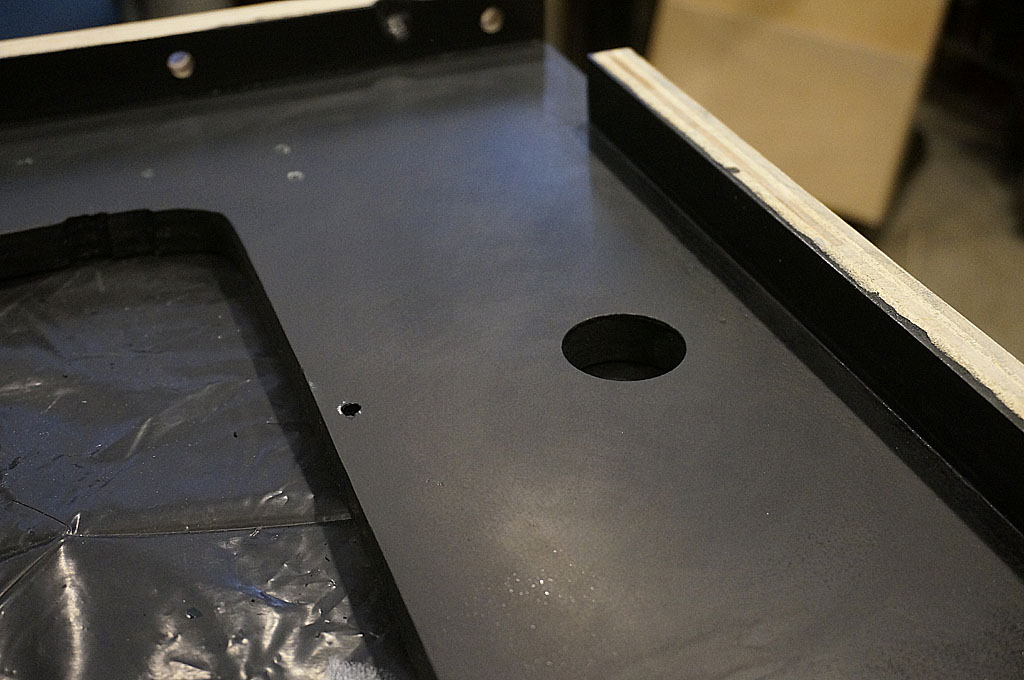 The backbox sits above that neck.  Here's the floor, with the LCD monitor passthrough and ventilation holes.