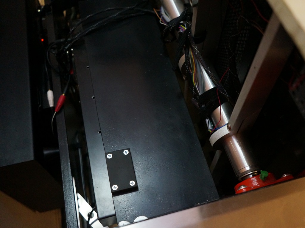 Here's the result, under the skirt, looking up at the playfield monitor.