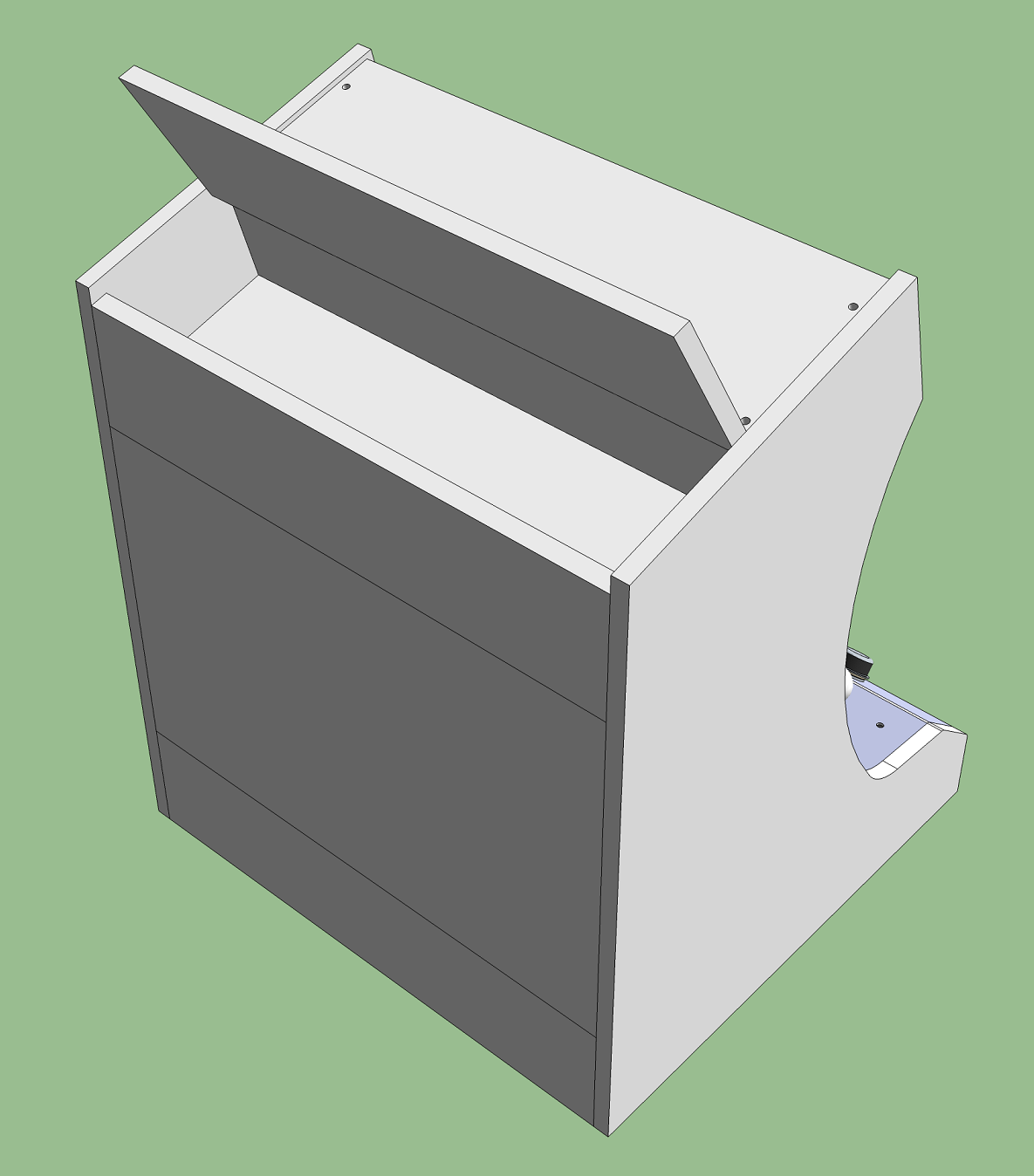 I wanted a storage box behind the marquee to store the 5" mini-racer wheels and the 8bitdo controllers.