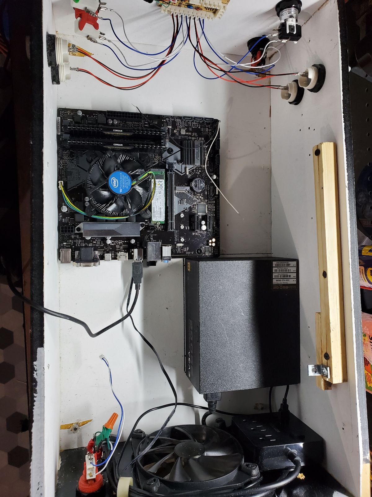 I did clone the SATA SSD over to an M.2 SSD so that there are fewer power and data cables. Next step is to route all the power supply cables along the sides, determine if I want to put an intake fan in and if so where. After all that is done, I'll have to mount the "force feedback" solenoids , driver board, etc  Last step will be mounting the last piece of wood to the base that the backbox sits on then figuring out all that cabling. I'm still not sure if I should keep the Dell soundbar or put speakers in the cab body.
