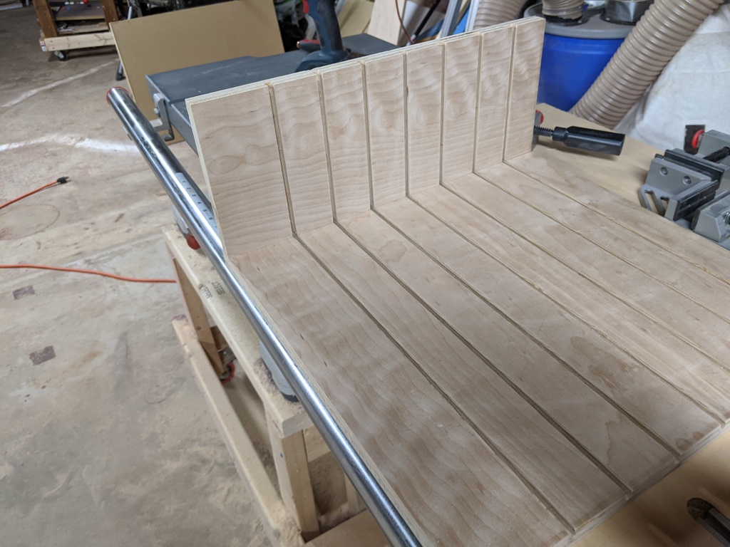 It has a birch veneer on top. Leftovers from cutting my cab.