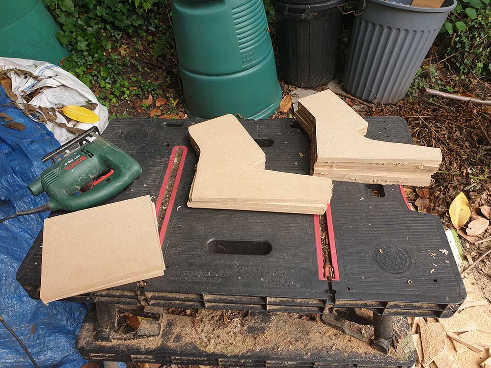 I’m making 3 initially so I got some 12mm MDF to cut the sides and the support panels. Rather than cut lots of small furring trips I thought it would be easier to have an ‘inner profile’ which was secured to the outside. This means for each cab I need to cut 2 profiles (left and right sides) and 2 inner profiles to support the top,back,base,speaker and CP areas.