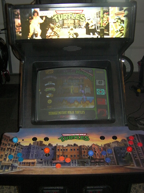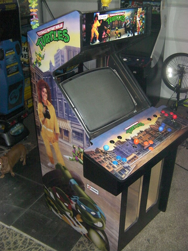 The original plan when I picked it up was to turn it in to a dedicated 4-player multigame. It was originally going to be a "wipe down" project. After assessing the condition of the sides... which were painted over the original TMNT vinyl... I decided the cab needed to be stripped. So I set out stripping the sides off... once it was bare I figured I would paint it black... throw a new TMNT marquee up top, a new generic TMNT CPO and call it a day. I mean, the original side art is just... bad. 1980's super cheeze... and that hand... WTF is up with that hand?