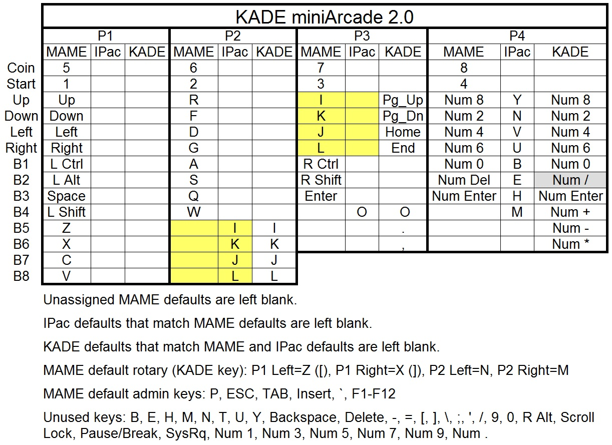 As I mentioned earlier the big one to avoid is P1 Start + P1 Joy Right for TAB -- you don't want button-mashing kids or drunk friends getting into the MAME menu system.   :scared