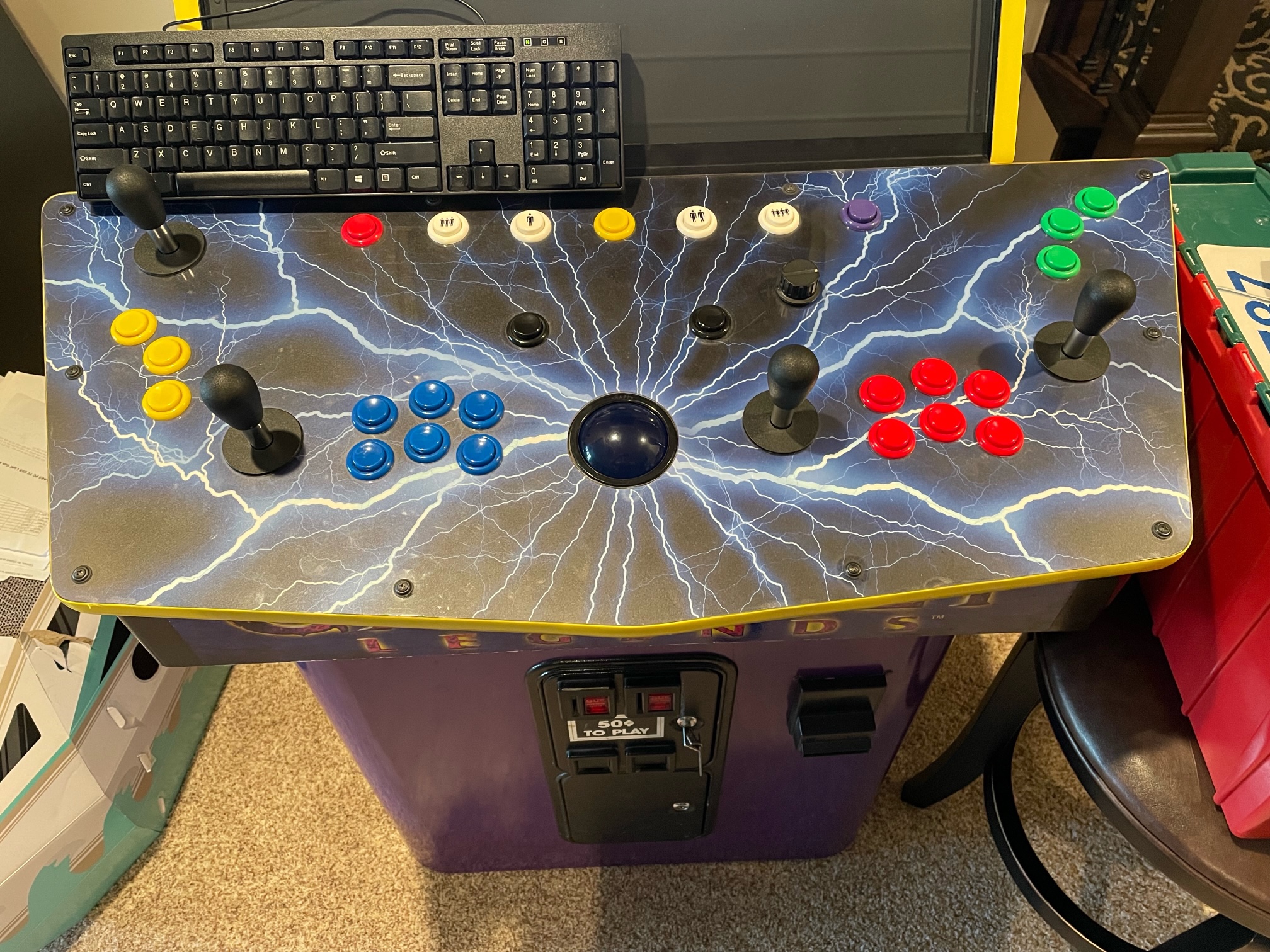 Regarding my redo the control panel i was not referring to the IPAC card, but the actual top panel where the buttons and joysticks are located, apparently control panel is the wrong word.   I thought maybe next year replacing it with one with proper buttons to cover coin 1-4 and so on might be a good idea, maybe add led button lights, just to make it my own since most the wiring was already done i feel like it lacks my touch per say.   I will have to read up on the wiring 101 as i am not sharp on that yet, but will cross that bridge when i get there.