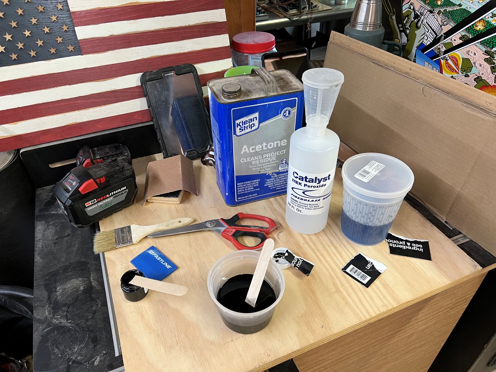 For anyone who may for some reason give a ---steaming pile of meadow muffin---, when you are playing with polyester resins, if you want the stuff to be easy to continue to add layers to without having to sand it first (and thereby physically opening up the ends of those styrene monomer chains for further resin bonding) you use pure resin- that is, something that doesn't have surfacing agent- i.e. wax- added to it.