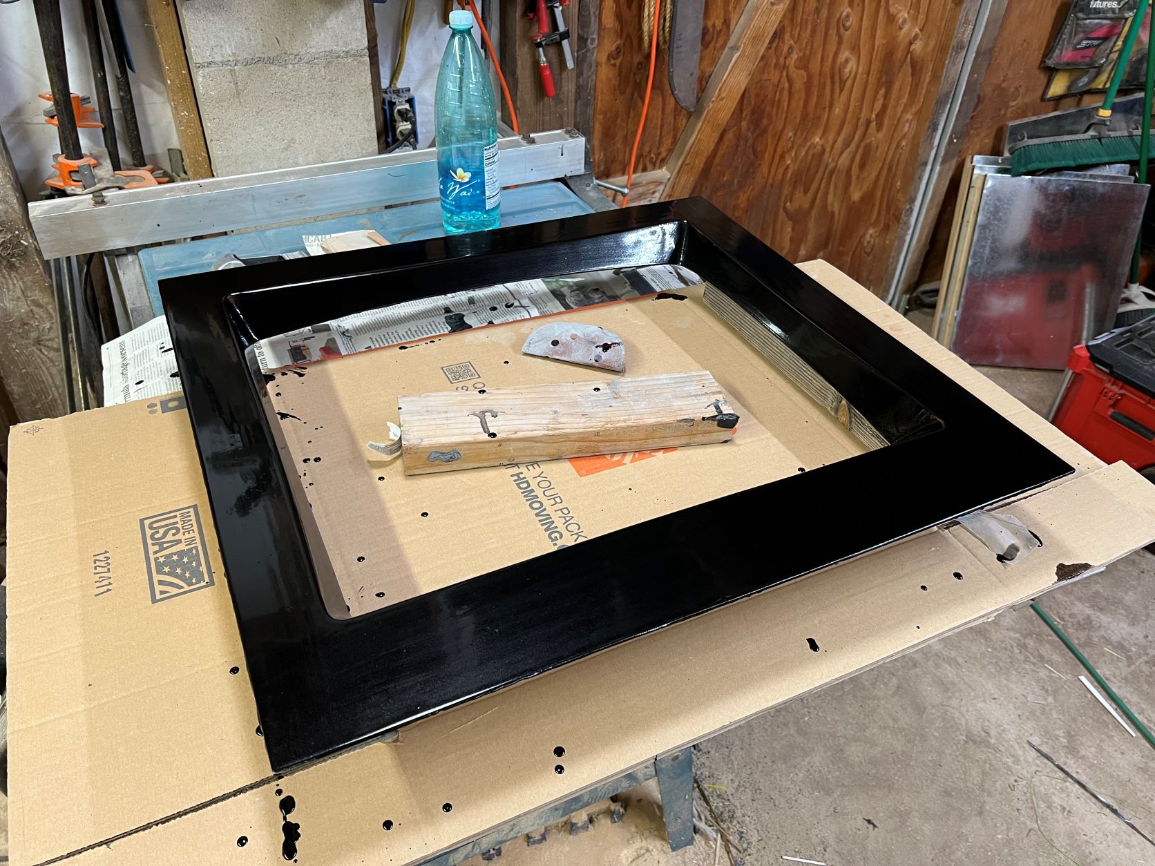 For this, fiberglass is not only what I know but a means to make this otherwise fragile bezel treatment strong- and at least a little bit prettier than what I might manage with a rattle can- which I would use for something this size.
