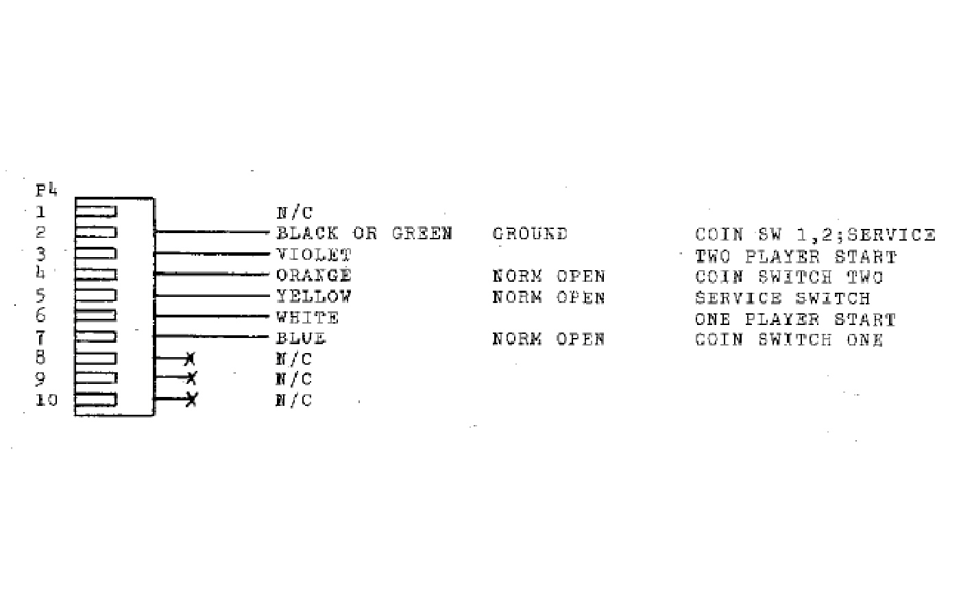 - During attract mode, connect the other end of the first jumper to the pin 6 P1 Start straight pin. (white wire)