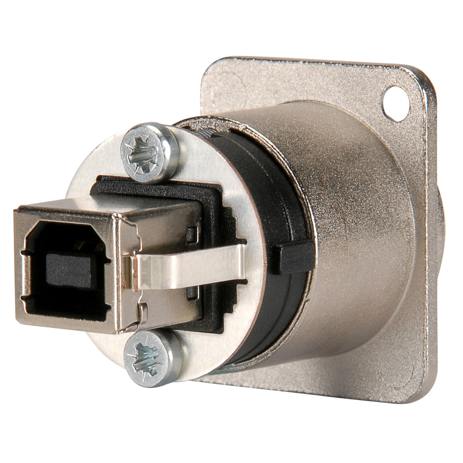 You might want to consider using Neutrik NAUSB-W-B (black) or NAUSB-W (nickel) USB feedthrus if you want to use removable, commonly-available USB A-B cables.