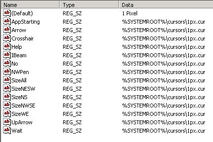 To get rid of the starting cursor in windows XP Open Regedit, got the HKEY_USERS\.Default\Control Panel\ Create a key called "Cursors" and within this key create new string values as shown in the attached screenshot, but point them to whatever cursor you want.