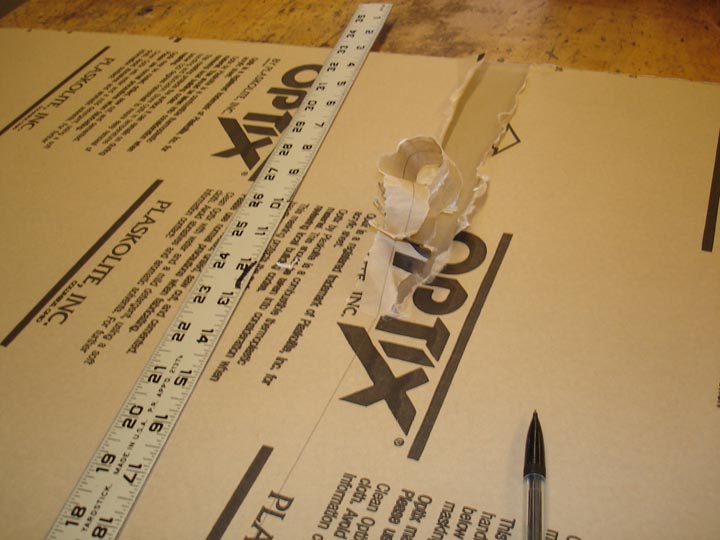 I measured where I needed to make the bend and marked it with a dry erase marker and pealed back the protective paper: