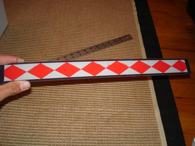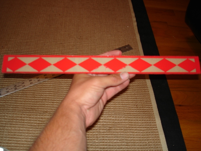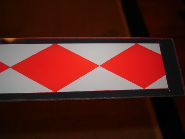 1. I drew up the borders and the triangles first. I then used a hobby knife to cut out the red triangles.