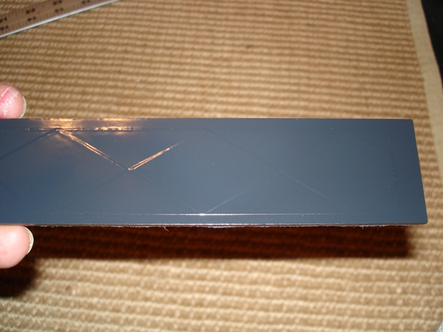 6. Here is the final product. When I get the rest finished, I'll show the plexi placed on the table. I think it matches the center felt very well. Note: I didn't let the paint set up, so you can see the blemishes of removing the paper before the paint dried. That error will not be repeated. I was more worried about the overall project and knew that there would be temporary problems.