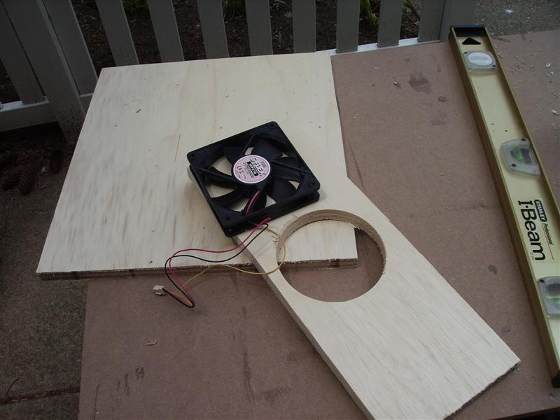 Next I readjusted the hole cutting bit to 120mm (it's max size) and cut a hole for the fan: