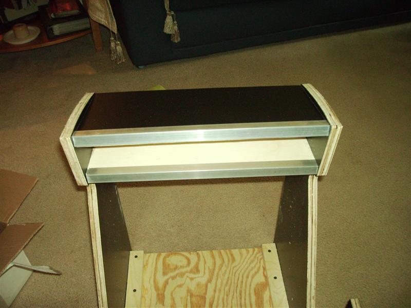 I installed angle iron on the bottom of the cabinet to tie it in with the marquee retainers.