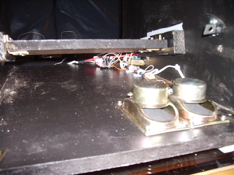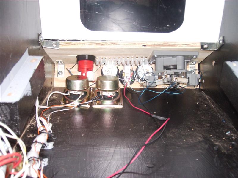 Here are the last of the interior shots. It ended up being a big PITA mounting everything inside because I didn't take into account the laptop was going to have a monitor, speaker plug and power plug in it. It didn't fit on the bottom of the cabinet, and I had to mount it along the side.