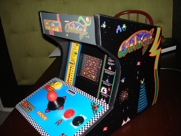 One thing to watch out for... I've seen people play pretty rough with Ms. Pacman and Galaga while trying to dodge either a ghost or bullet. Could fling the whole cabinet off your desk. Some way to secure it might be a good idea.