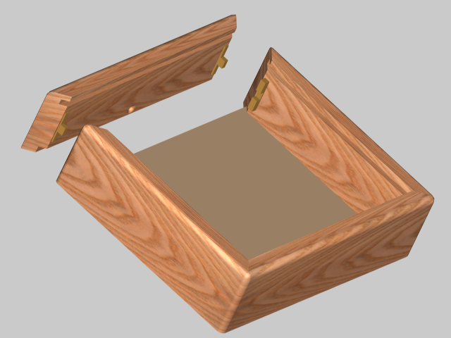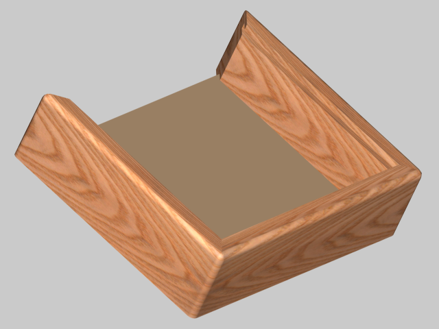 Here is a rendering of the finished product. It is shown w/o art but it is designed to fit an 8"x10" graphic of your choice under the acrylic sheet, the size of the art allows you to have it printed at a photo store or even right from your home ink-jet printer.