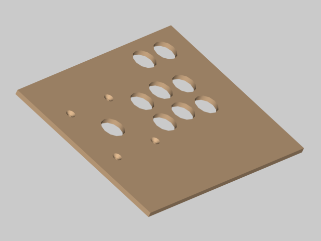 Step 6 is to drill the remaining piece of MDF for the buttons and the joystick.  Using the template provided and either a spade bit, hole saw, or forstener bit drill the 1-1/8" holes and using a 3/16" or 1/4" twist drill bit drill the mounting holes.  Once the joystick mounting holes are drilled countersink them so that you can use flat-head bolts to mount the joystick and hide them behind the art and acrylic: