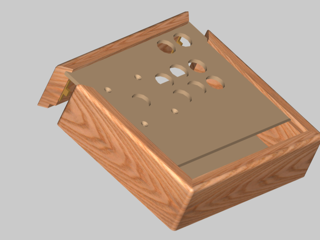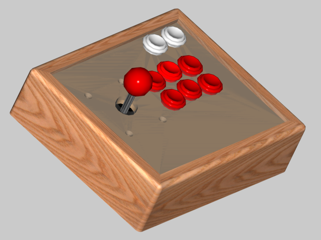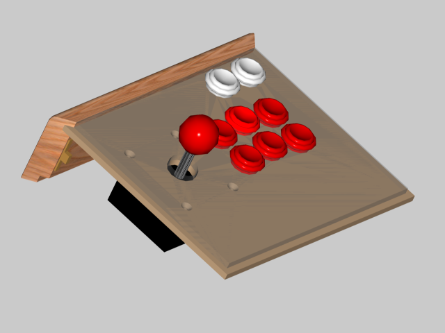 These plans are for a 1 player CP that uses buttons designed for a 1-1/8" hole, joysticks with a hole pattern similar to many wico, happ, omni-sticks, and u-360s.  There is 2-1/4" between the CP lid and the bottom of the box.  I think the ideal joystick for this box is the U-360 because of it's versatility and ability to connect the buttons w/o an encoder.