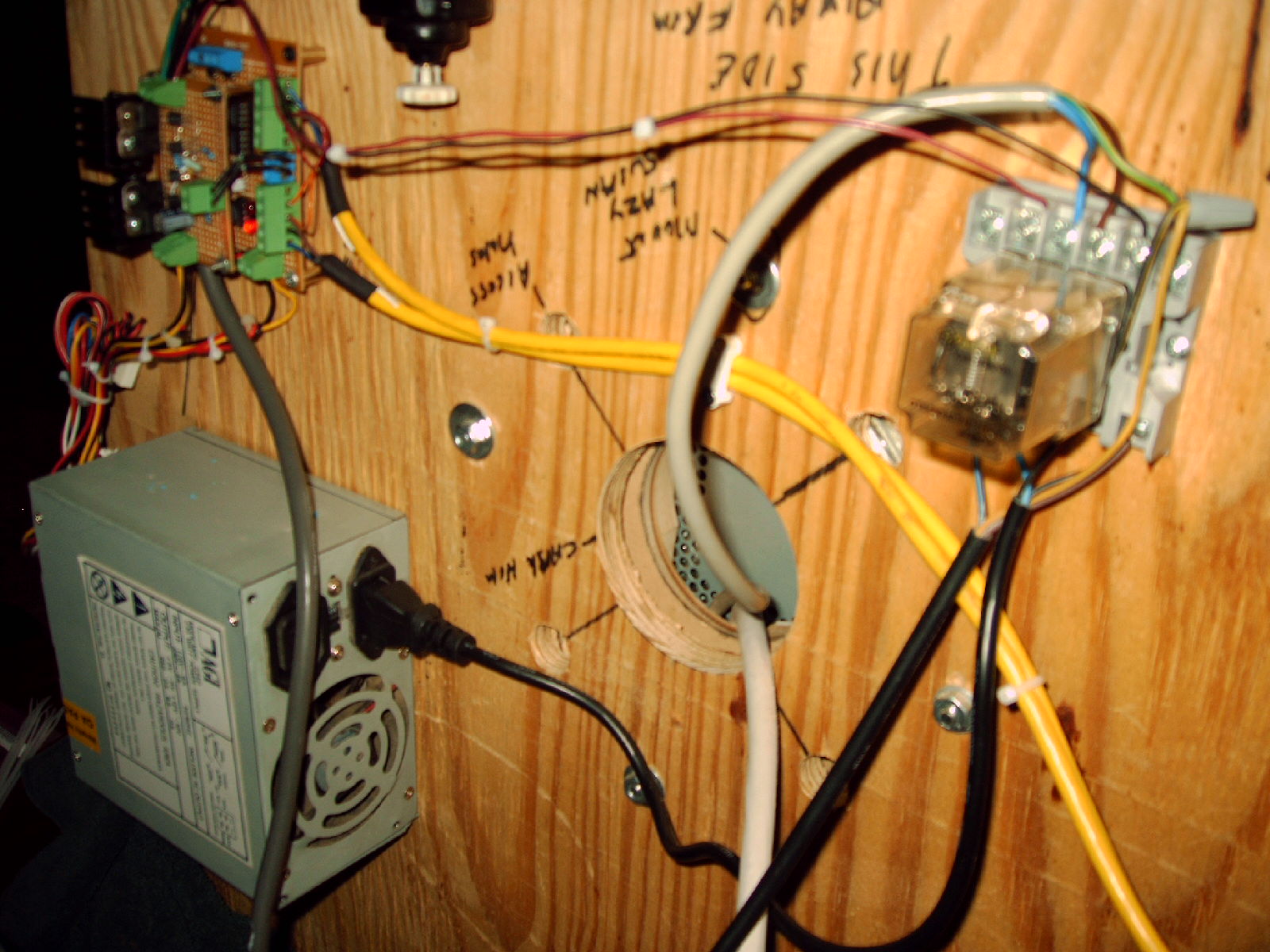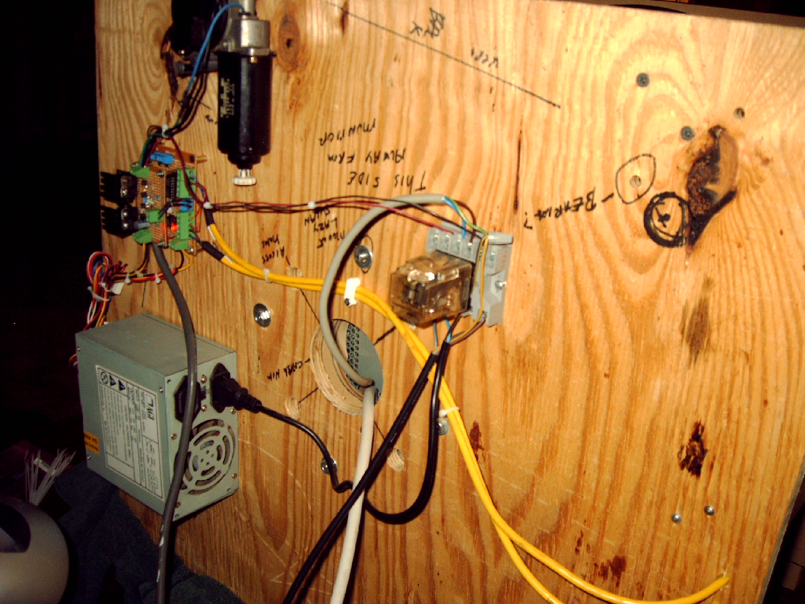 And here is the other side of the back, you can see teh motor mounted to teh plywood and teh H drive and interface board mounted below it.