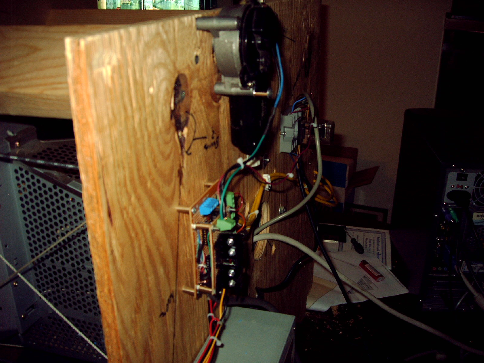And here is the other side of the back, you can see teh motor mounted to teh plywood and teh H drive and interface board mounted below it.