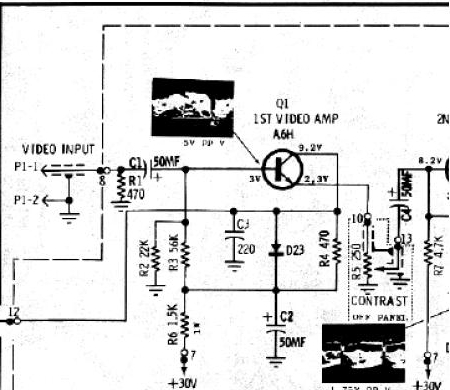 When I get home I'll pop the leads onto pins 21 and 22 on PCB2 to see if there is any video signal coming off the boards.  Any idea on what range I would reasonably expect to see?