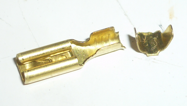If using the female spade connector trick, you will need to break off the last pair of "wings" (that lock the wire down) for it to fit inside the SCART housing. Lightly rub down the broken end with a file or sandpaper to remove any sharp bits. You will also need to bend the necks a bit (match the angle of the SCART header).