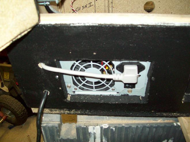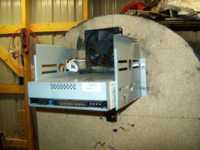 I mutilated an old PC case to get the mount for my Cd ROM. Here is a picture of it and the back case fan. The fan is a variable speed with a temp sensor.