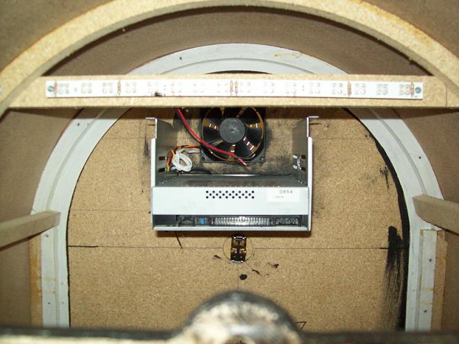 Here is picture of the CDROM/fan as viewed through the marquee opening.