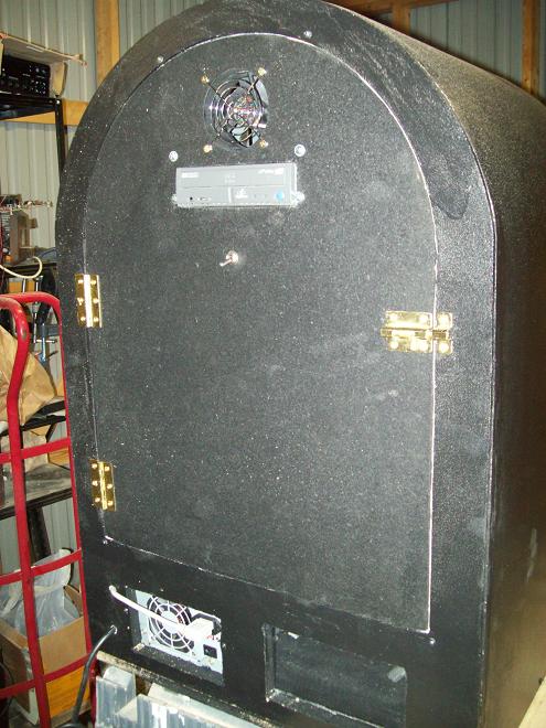 So far the fan hasnt run at full speed, which is a good thing. I cant hear that fan or the power supply one running at all from the front of the juke. I'm hoping the oversized hole i cut in the bottom back will let plenty of air in and help in cooling. i was worried about the monitor putting off a lot of heat too.
