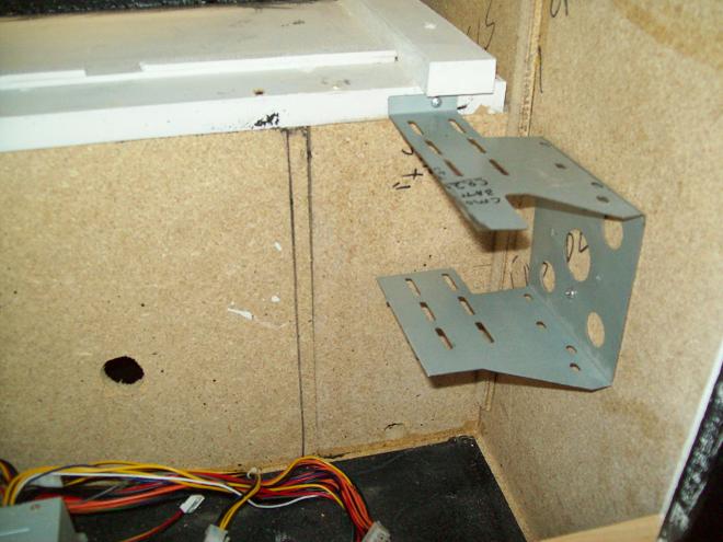 Ok, here is a pic of the rib attached to the front panel, also you can see the mounting bolts for the monitor and the small bolts for the marquee retainer.
