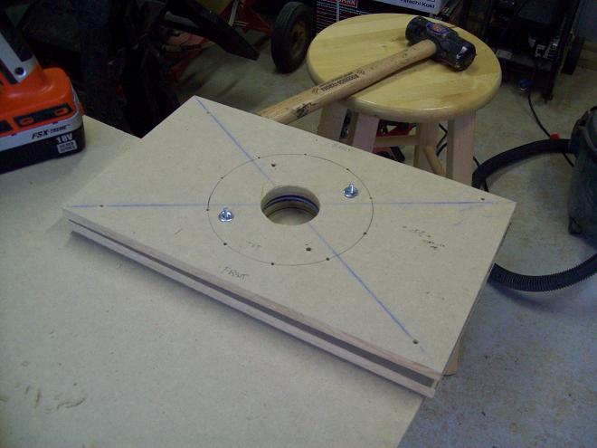 This is going to hold up the applying of the acrylic and laminate because I want to be sure the router guide will fit before covering the hole with the 1/8" acrylic.