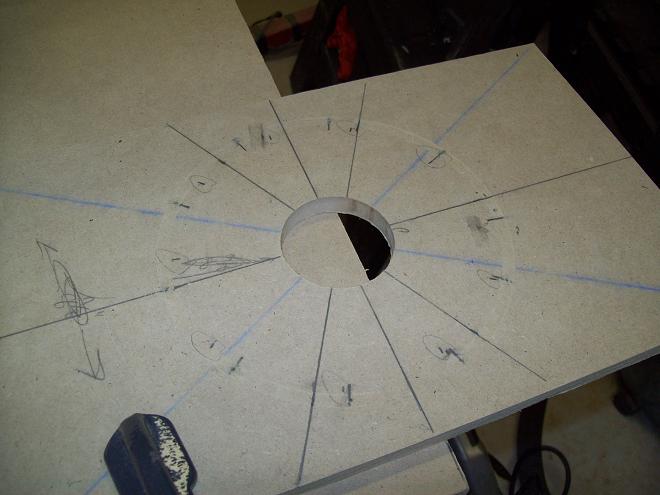 I then attempted to mark the holes for the magnets. I have 10 magnets so there needed to be one at every 36 degrees.